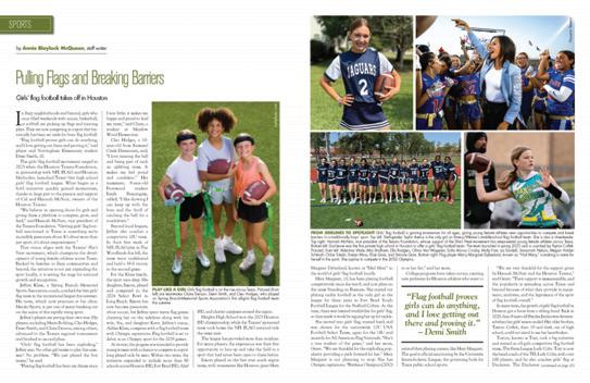 Thank you so much for writing the article about girls’ flag football. It is a great competitive sport and even better, it’s a lot of fun! My team, Standing on Business, and I really want Texas UIL to sanction girls flag football so we can play for our high school teams! Your article showing so many girls all over the Houston area playing and competing in flag football helps us prove to Texas UIL how popular girls’ flag is now and how it’s a growing sport.