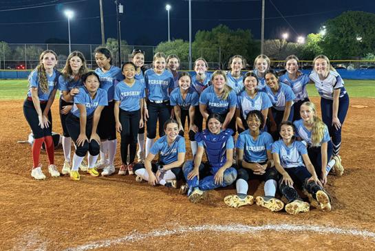 The West University Softball Association 14U Breakers took a moment to get a picture with players from the Pershing Pandas team after competing together in a WUSA 14U Spring Season Co-Op program game. WUSA's 14U Spring Co-Op program allows WUSA players in the 14U division to compete with area middle school teams over the course of the spring. WUSA fielded three 14U teams this spring. These included WUSA’s two tournament teams (Breakers and Wave) and the spring recreational team, the Fury. The 14U players who have also competed in eight recreational seasons are recognized as WUSA graduates at the end of the season. Pictured (front row, on the ground, from left) are Alexis Freshwater, Daniela Trejo, Madison Kimble, Taylor Fefer, Cindy Westin; (middle row, from left) Thi Nguyen, Evelyn Wu, Olivia Taschery, Nina Jalbrzykowski, Annabelle Hamilton, Allie Kim, Gaby Ramírez; (top row, from left) Sarah Garber, Hays McAllister, Natalia Cotton, Emerson Glenn, Sophie Galfione, Reese Marchive, Eliana Marino, Lila Elliott, Caroline Cozart, and Elliott Osborne