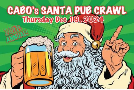 Lively holiday event where participants don festive attire and explore the best bars in Cabo San Lucas, celebrating the season with drinks, music, and merriment.