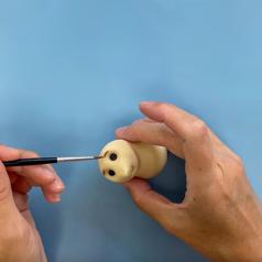 Add two small balls of black modelling paste into the eye sockets and secure with the smaller end of the bone tool.