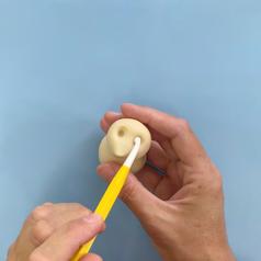 Form two tiny balls of pink modelling paste and stick them in the middle of the ears. Secure with the bone tool.