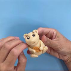 Form two small pieces of ivory paste into two tubes for arms. Make one end thinner and curve inwards.