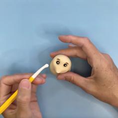 Use your thumb to flatten where the eyes will be. Then gently mark with a ball tool.