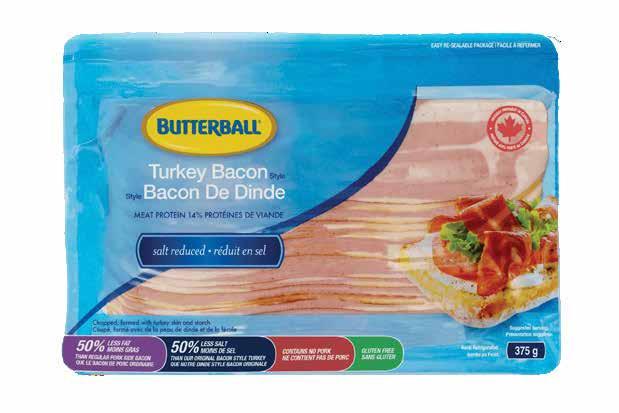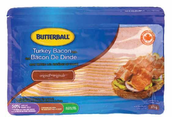 Butterball Turkey Bacon, a lean alternative to pork bacon. Made from 100% turkey meat, it’s lower in fat, full of flavour and easy to prepare. Try it this Sunday morning. Or anytime.