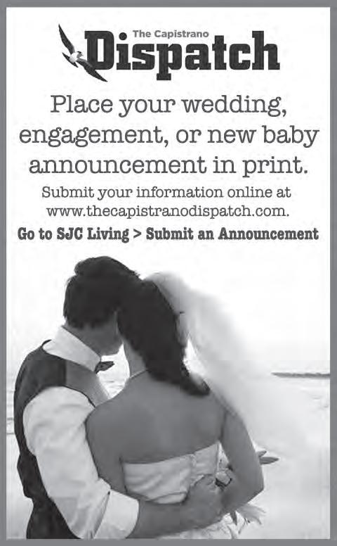 5 p.m. The San Juan Capistrano City Council will hold a regularly scheduled meeting open to the public. Nydegger Building, 31421 La Matanza Street. sanjuancapistrano.org.