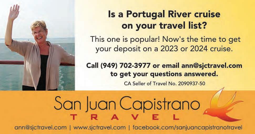 Jan Siegel was a 33-year resident of San Juan Capistrano and now resides in the neighboring town of Rancho Mission Viejo. She served on the city’s Cultural Heritage Commission for 13 years, has been a volunteer guide for the San Juan Capistrano Friends of the Library’s architectural walking tour for 26 years and is currently the museum curator for the San Juan Cap istrano Historical Society. She was named Woman of the Year by the Chamber of Commerce in 2005, Volunteer of the Year in 2011 and was inducted into the city’s Wall of Recognition in 2007. CD