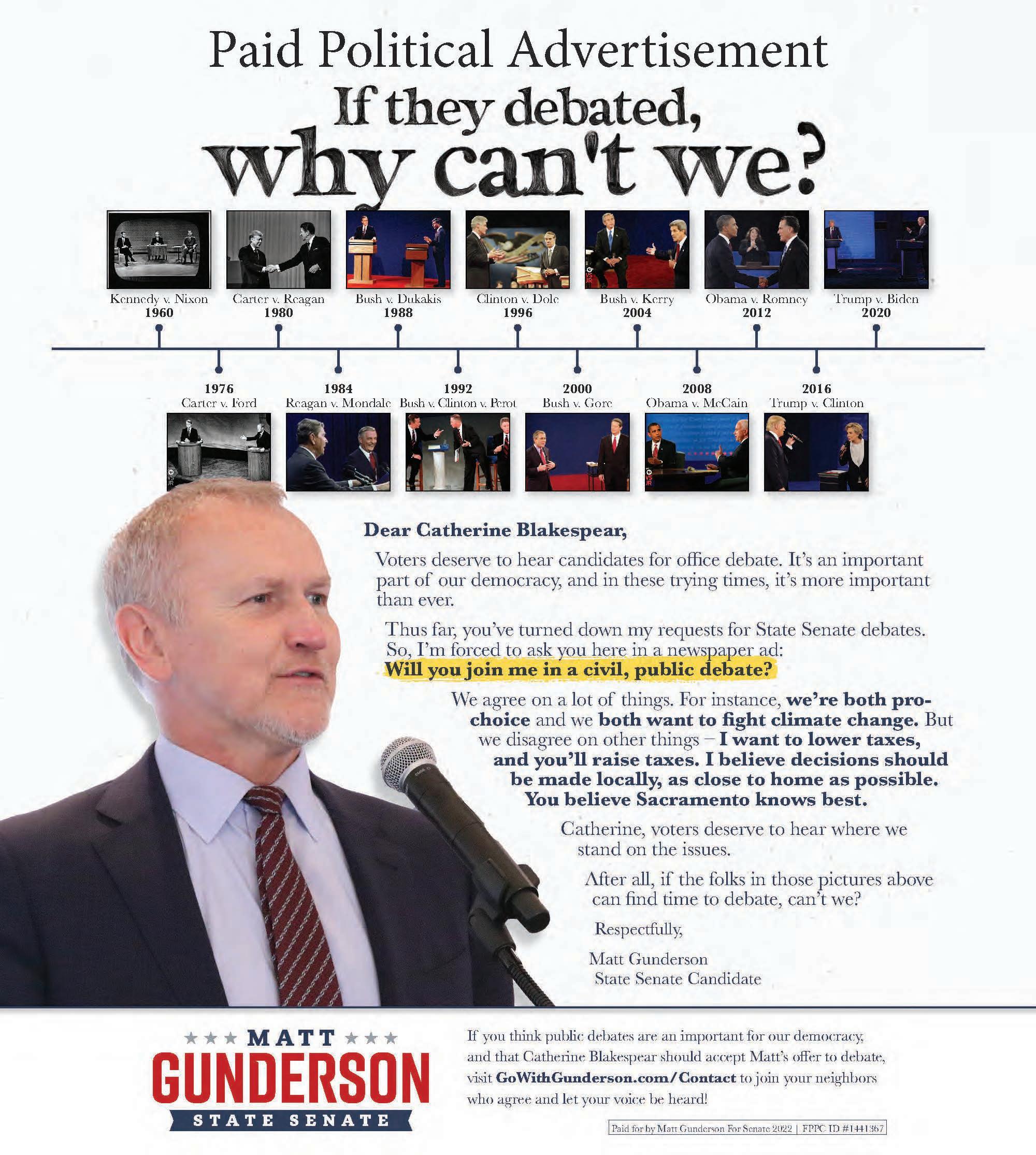 The candidates also addressed plans by developer Dan Almquist to build a parking structure and office and retail space at the current Camino Real Playhouse property, which would require the razing of the current Playhouse site.