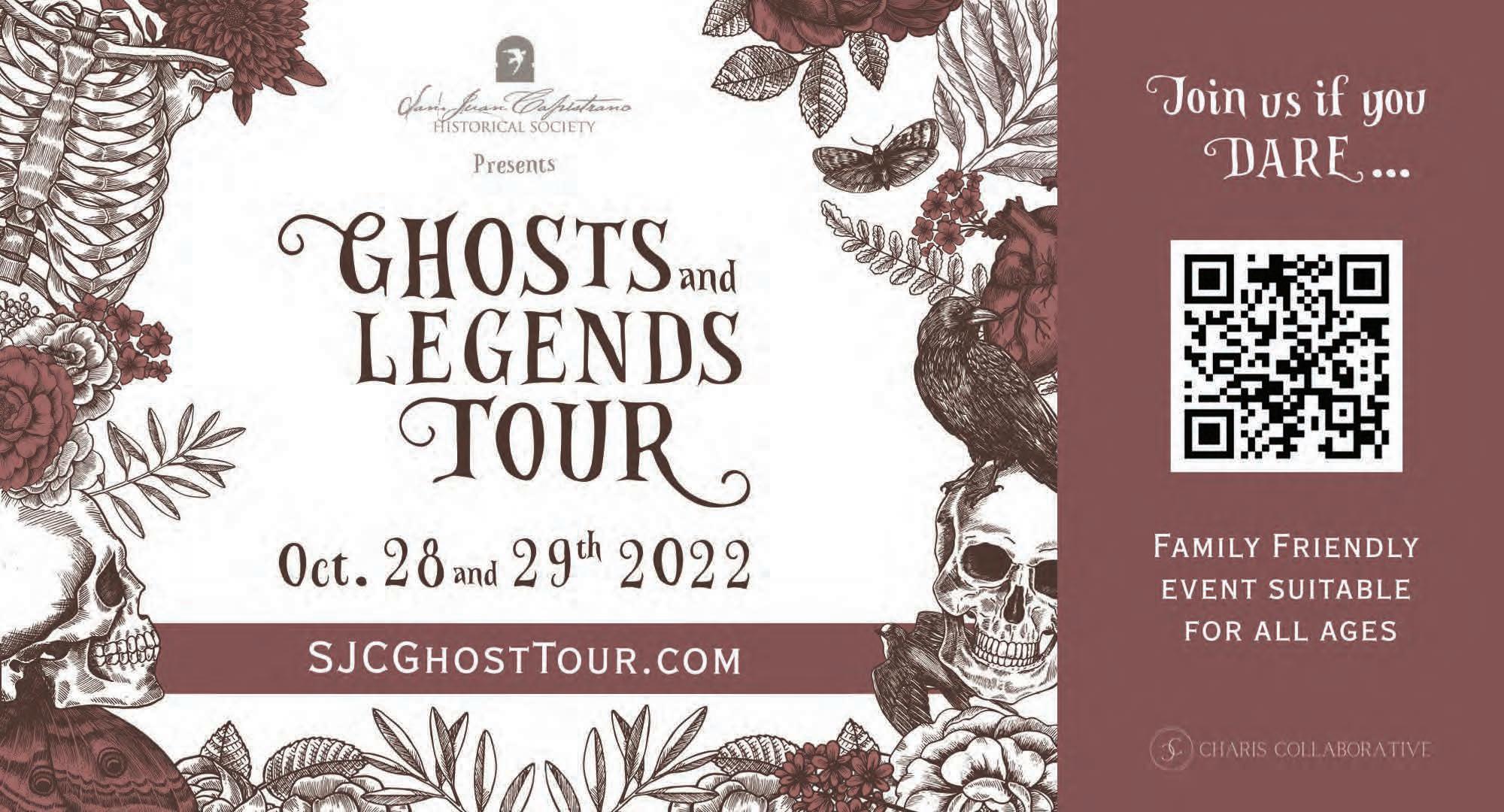 When you make your reservations, which are a must, you sign up for the time slot you want. Reservations are available on the Society web page at sjchistoricalsociety.com. For more information, call the Historical Society at 949.493.4056. This family event is the perfect way to start your Halloween weekend.