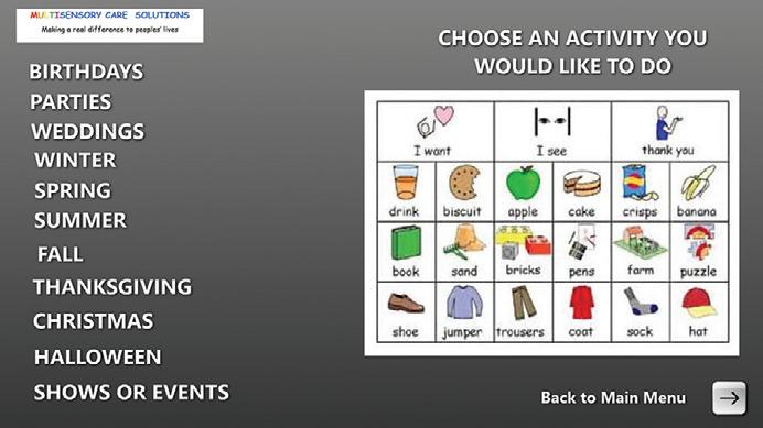 and reminiscence therapy sessions. Audio, video, slide shows, text, images and aromas can all be blended