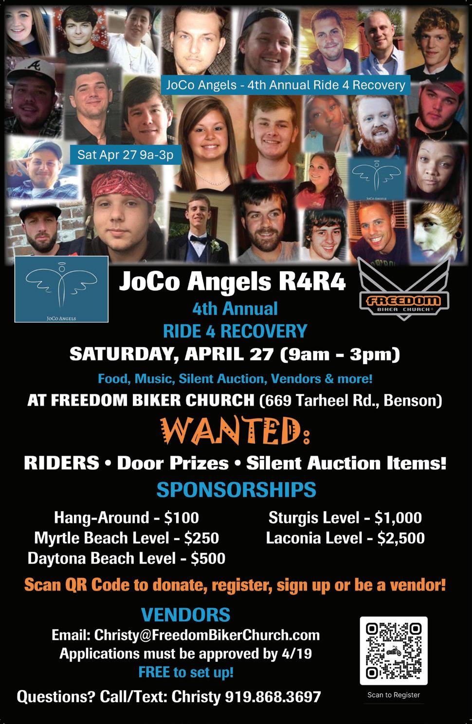 BLESSING Freedom Biker Church, 455 Rock Hill Rd., Fayetteville, NC. 11am-2pm, food, door prizes, bike blessings, music, event tee, vendors. www.freedombikerchurchfayetteville. com