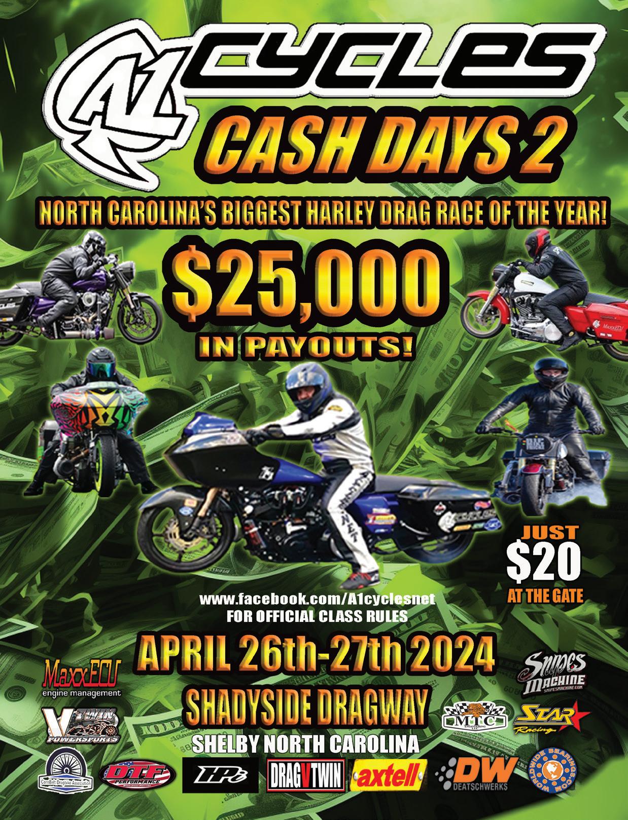 APR 12-13 SMOKIN’ H-D IS ON FIRE ALL HARLEY WORLD SHOOTOUT Farmington Dragway 2992 NC-801, Mocksville, NC. $20/ gate, Live music, vendors, drag racing. 336479-2071