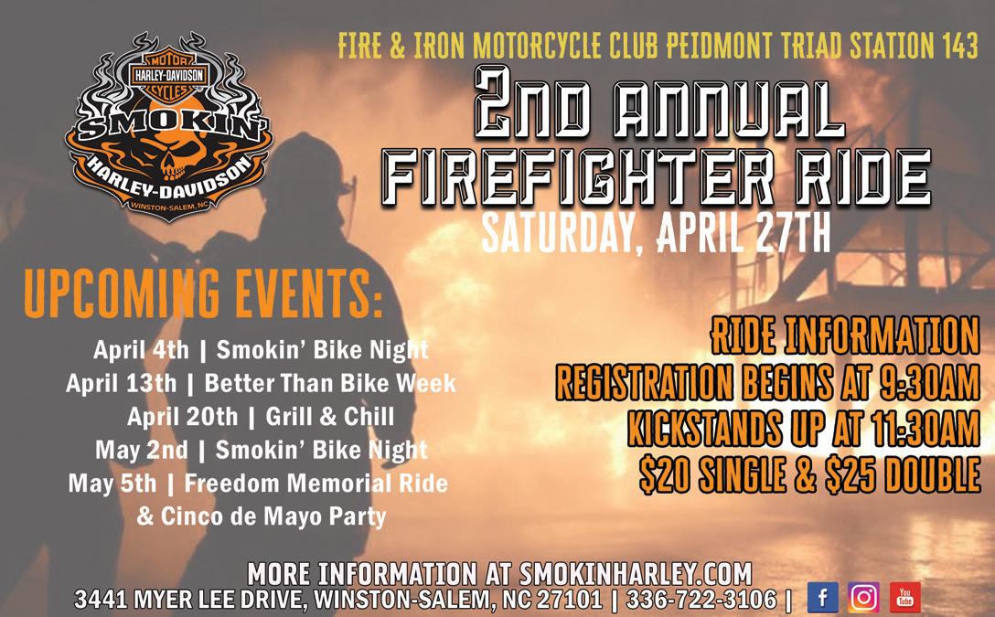 APR 13 SMOKIN HARLEY-DAVIDSON BETTER THAN BIKE WEEK 3441 Myer Lee Dr., Winston-Salem, NC. 12-2pm, music, free food & beer, vendors, bike destruction $5/hit, $10/3 hits. Proceeds go to Pretty In Pink Foundation. www.smokinharley.com, 336-722-3106
