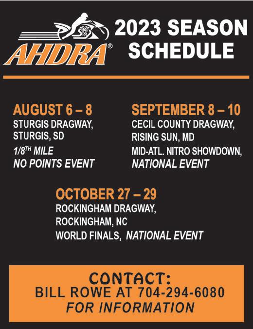 AUG 6-8 AHDRA DRAG RACING Sturgis Dragway, SD-79, Sturgis, SD. Bill Rowe, 704294-6080