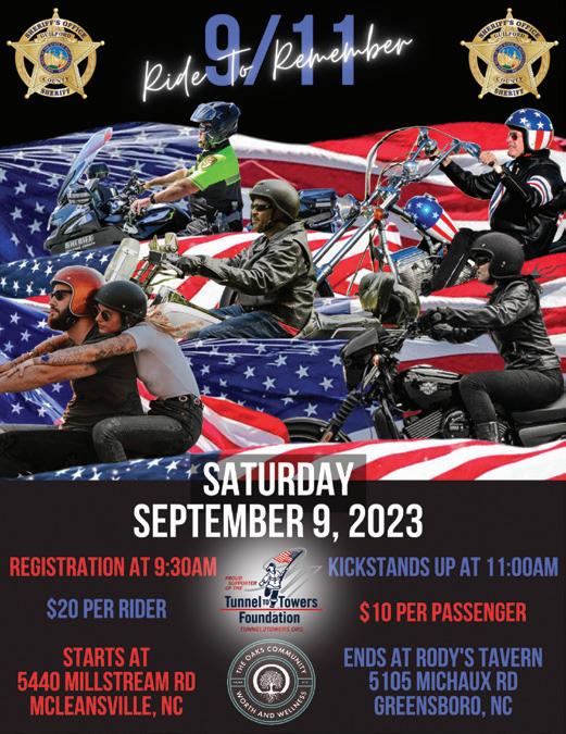 RIDE 2201 W. Cornwallis Dr., Greensboro, NC. Reg 9:30am with coffee & donuts, KSU 11am, $20/single, $25/double. 50/50, food & drinks avail. Benefits Elks Lodge Rider’s Group charities. www.greensboroelks.org, elksriders602@gmail.com