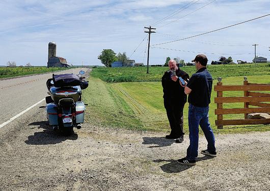 Out hopped Chuck, the man who would get us back on track, sooner rather than later. (Luved his accent, btw.) So, Chuck just happened to drive by earlier and he noticed our flashers; he decided to turn around (it’s a Biker Code). He pulled up and we were thinking who’s this and is he a serial