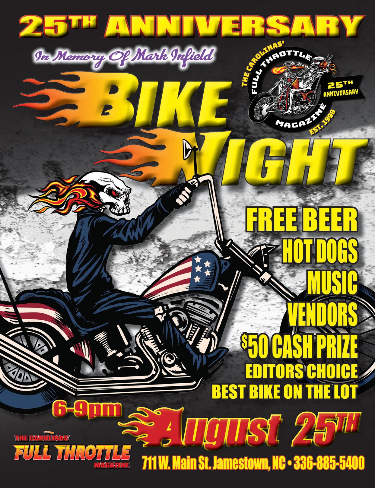 Make sure as you flip the pages of this, the 300th issue, of the Carolinas’ Full Throttle Magazine that you take a minute to read the articles and check out the advertisers. Those advertisers make the magazine free each month for YOU. Maybe stop in and buy something from them…you know you want to.