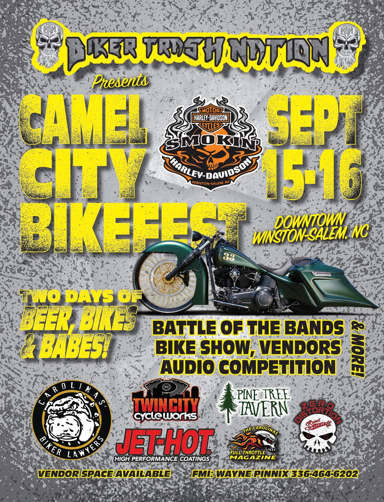 JUL 15 SIZZLIN SUMMER RALLY AT SMOKIN HARLEY-DAVIDSON 3441 Myer Lee Dr., Winston-Salem, NC. 11:30am, live music, free reg for The Carolinas’ Full Throttle Magazine bike show, food & beer, vendors, trophies, cash & trophy for best in show. www. smokinharley.com, 336-722-3106