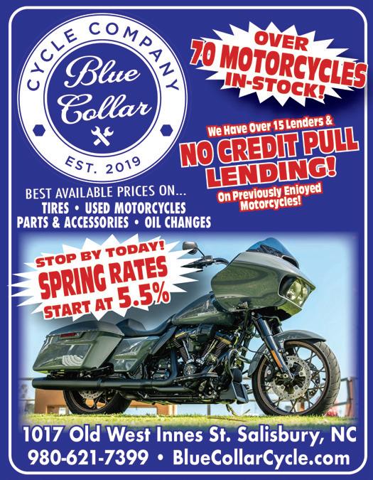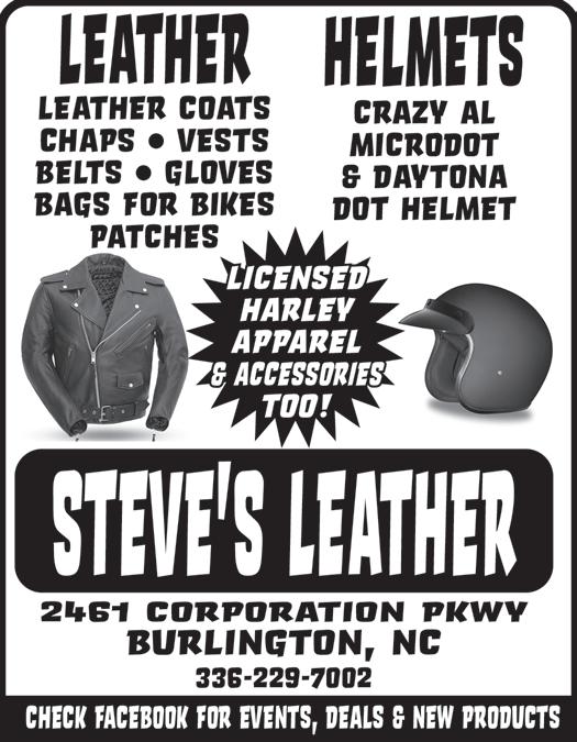 e Made It! It’s March and tIMe to head down to daytona for the start of the rally season! Even though old Phil didn’t see his shadow and it’s been warmer than usual, that Florida sun is gonna be a nice change! We will be down checking out the Sons Of Speed Vintage Motorcycle Racing on March 2nd and will spend a couple days riding and fooling around. Daytona is just the beginning! The March Cruisin’ Calendar is full of events across The Carolinas for you to check out. Poker runs, benefits, parties, open houses and The CBA Spring Swap Meet & Bike Show! They are featured on the front cover and it should be in your calendar as well. This is a good, old school biker swap meet, get on your scoot and ride in for some fun. You may find that missing piece to your chopper project, or may start a new one after you pick up all the parts you need. Stick around for live music, bike shows, and make sure you get a pork chop sandwich. I even hear Crazy Chuck the Moonshiner will be there!