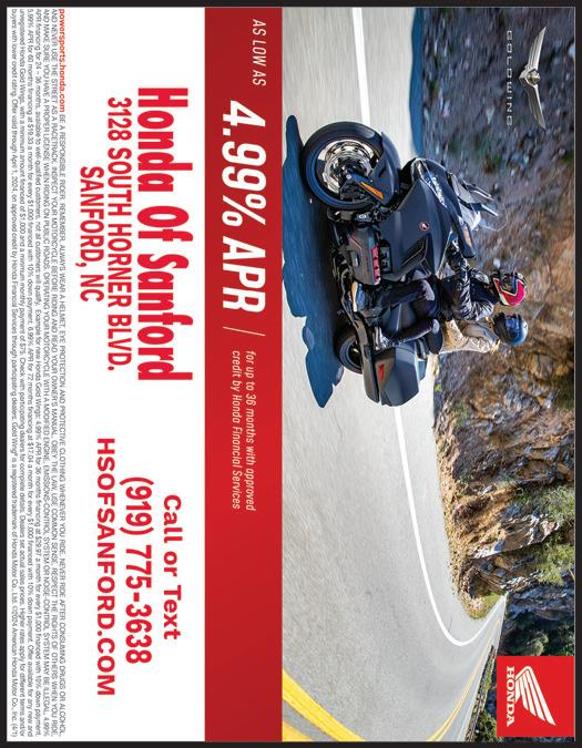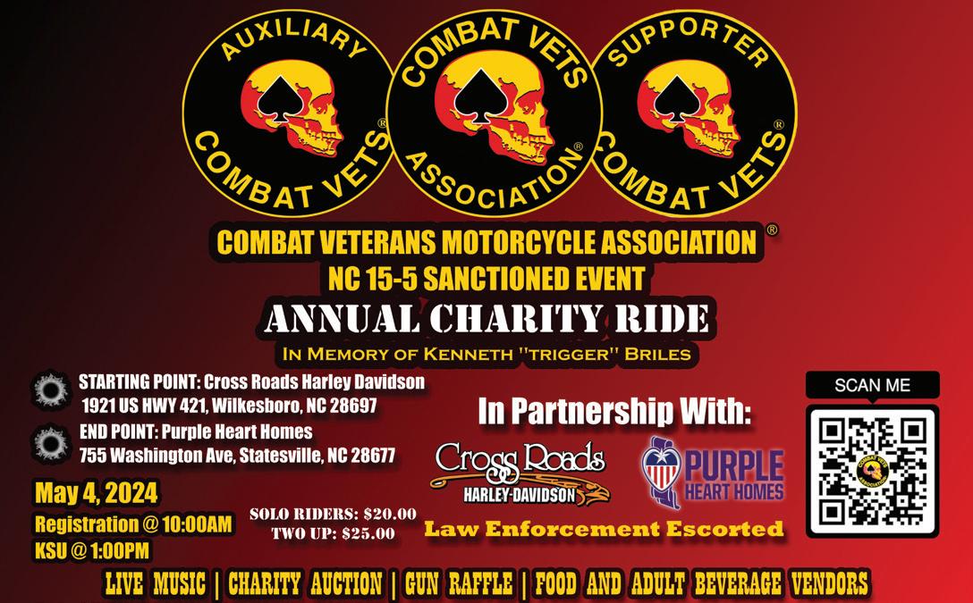 MAR 16 3RD ANNUAL US SPYDER RYDERS BACK IN THE SADDLE BENEFIT RIDE Fort Bragg Harley-Davidson, 3950 Sycamore Dairy Rd., Fayetteville, NC. Reg 9am, KSU 11am, $20/rider, $5/passenger, free food. www. fortbraggharley.com, 910-864-1200