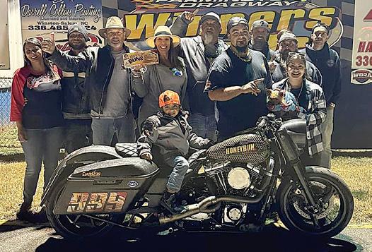 Mike Motto, Jacksonville, NC, Holeshot Racing, has given Carolina fans a team to cheer for when the big motors thunder down the strip. In 2022 and 2023 he took the All Harley Drag Racing Association Extreme Outlaw Class Championships. These are the big motor, no wheelie bar machines you see riders wrestle down the strip in seven seconds.