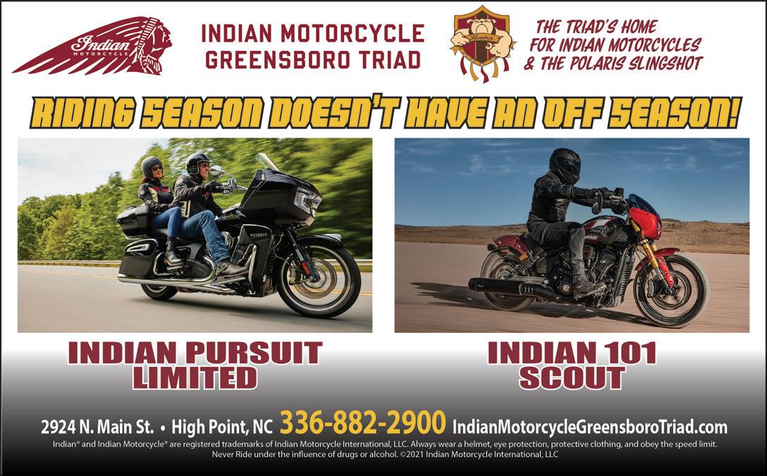 NOV 9 RIDING HIGH H-D YEAR END EVENT 3036 NC Hwy 68, High Point, NC. 10am-3pm, early bird prizes, giveaways. www.ridinghighharleydavidson. com, 336-273-1101