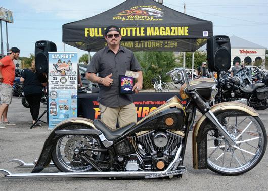 a good looking bike, stretch bags, big chrome wheel and all. Angel took home $200 as best in show and an invitation to the Full Throttle Custom Bike Show on February 1st, 2025, inside the Greensboro Coliseum. If you didn’t see it at the beach, ya better get to Greensboro to check it out there!