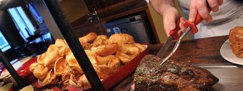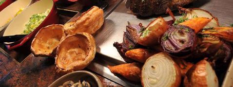 withYorkshirepudding,mash potato,vegetablesand gravy