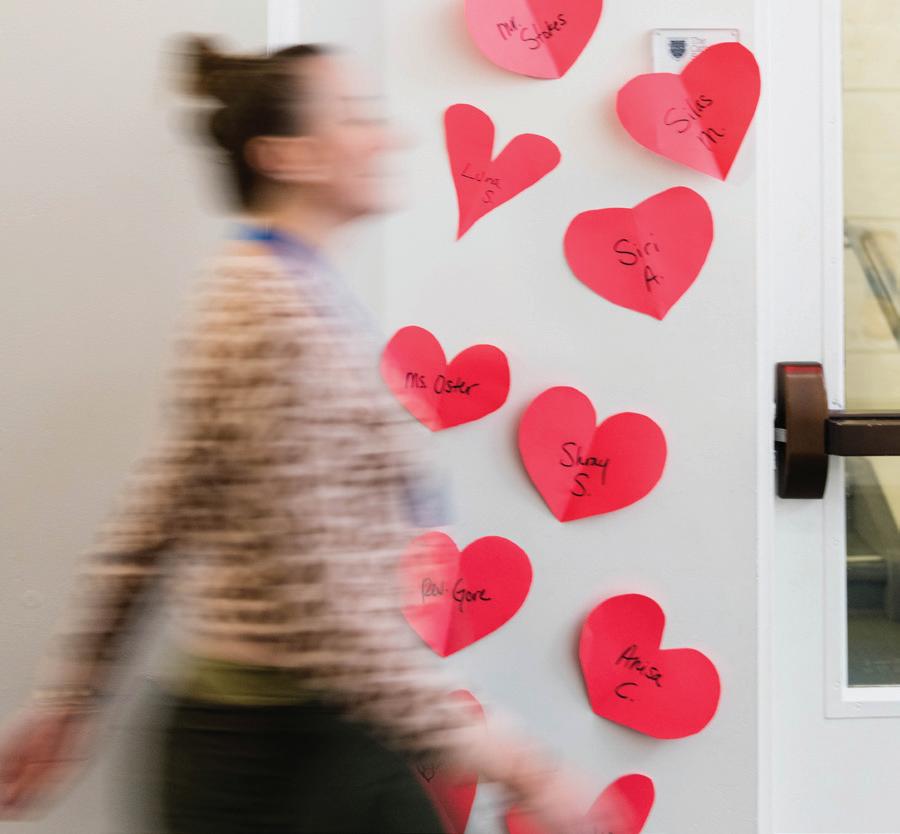 Ms. Corbin still has her hearts that were hung on the walls when she was in school, and she felt compelled to continue the tradition here. “It gave me an opportunity to think about each person who is in this space, who makes it what it is each day. It really is special each time to see folks enter the hallway on that day and know that somebody was thinking about them. It’s one of those small, sweet things that feels very Cathedral.”