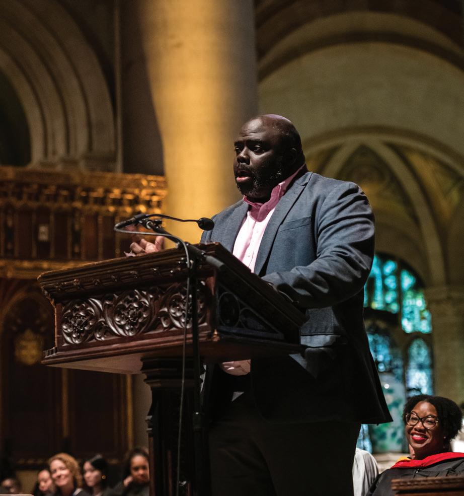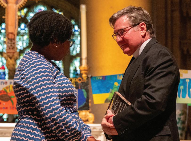 Neighbor Award, which recognizes and appreciates a small business with ties to the community, was given to The Hungarian Pastry Shop. The Hungarian Pastry Shop is run by the Binioris family. Four members of the family attended Cathedral, including Sofia ’98, Philip ’00, Daphne ’03, and Amanda ’03. Hungarian is widely known as a staple of Cathedral life and it was an honor to share the first-ever Close Neighbor Award with them. The second award was the A-to-Z Award which is a reimagined version of the Z Award, honoring a non-employee community member whose expansive commitment and care for The Cathedral School stand as models for all. This year’s A-to-Z Award was given to The Very Reverend Patrick Malloy, PhD, 11th Dean of the Cathedral of St. John the Divine and a dedicated member of the Close community.