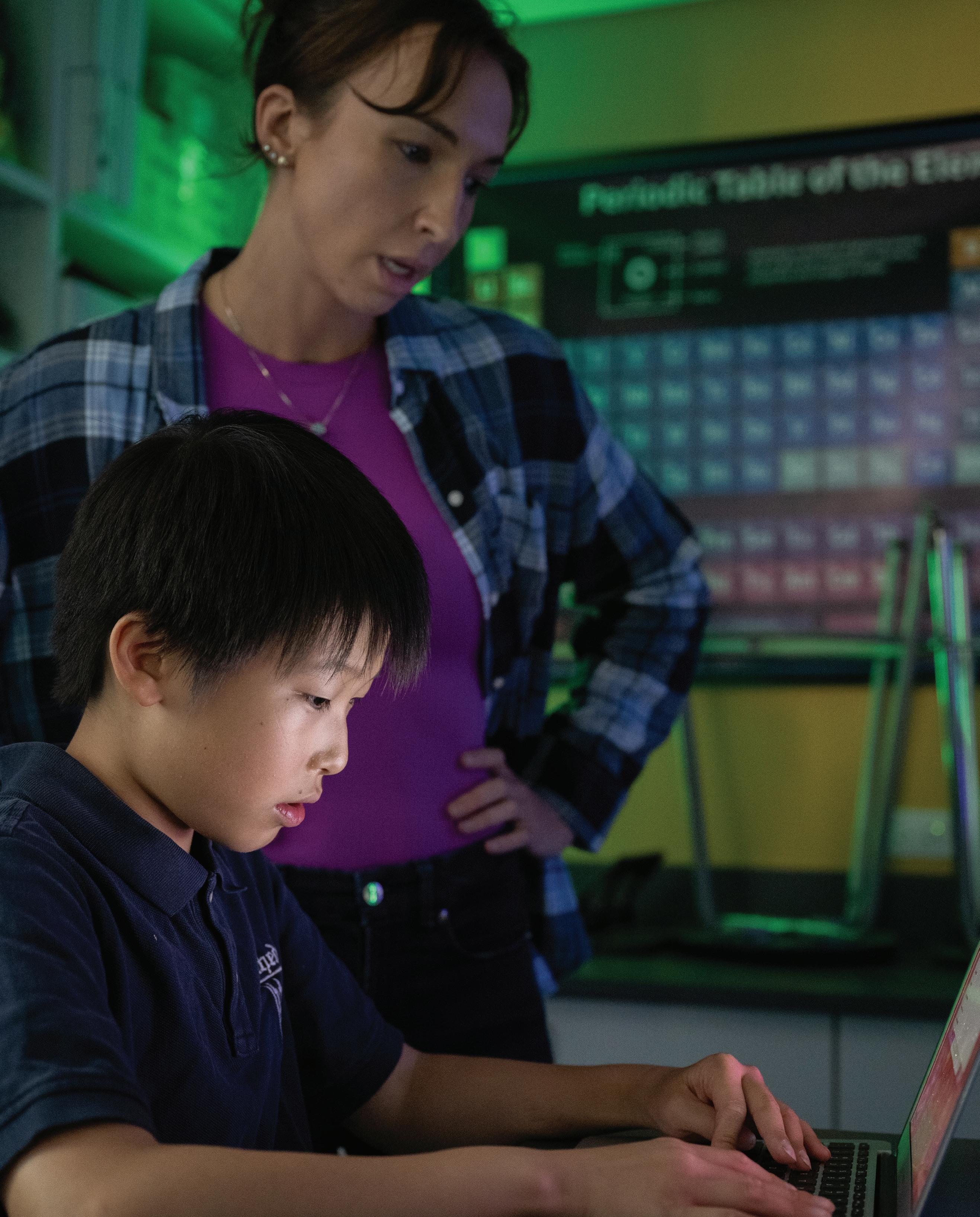 Our Division Heads, Laura Higgins and Delilah Lora-Arez, exemplify this collaborative spirit. Just as our students look up to and learn from each other, our leaders continuously grow by sharing insights and supporting one another joyfully and generously. More information about their partnership and mutual respect can be found on p. 28.