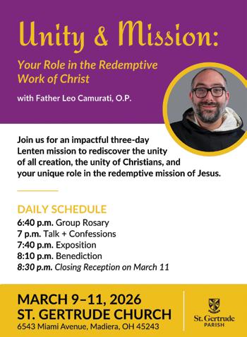 was ordained a priest for the Archdiocese of Cincinnati in May 2022. He is presently studying for a Doctorate in Patristic Theology at the Pontifical Gregorian University in Rome.
