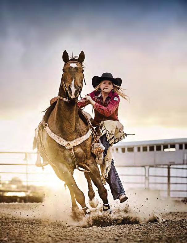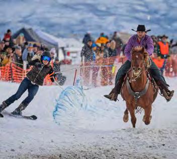 Photos by Hillary Maybery: Winter; McKenna Peterson on Bald Mountain. Summer; Kali Castle, High School Rodeo Goat Tying.