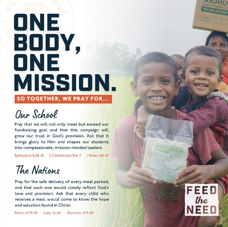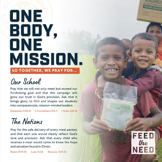 Feed the Need is The Champion Group’s premier fundraising event. We created a discipleshipfocused event that enables your school to raise significant funds while making a true difference in the world. Feed the Need is a unique experience that trains your students to be globally aware, mission-minded, and service-focused in an “I”-centric world.