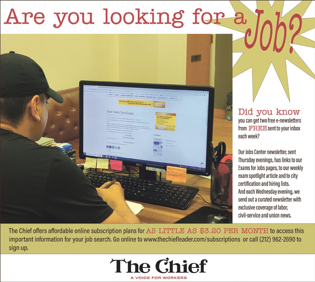 For further information about where to apply to civil service exams and jobs, visit the thechief.org/exams.