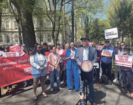 Leadership of the Professional Staff Congress-CUNY, United Auto Workers Region 9A and Local 1104 of the Communications Workers of America joined the City Council’s Progressive Caucus at a recent rally to denounce the administration’s efforts.