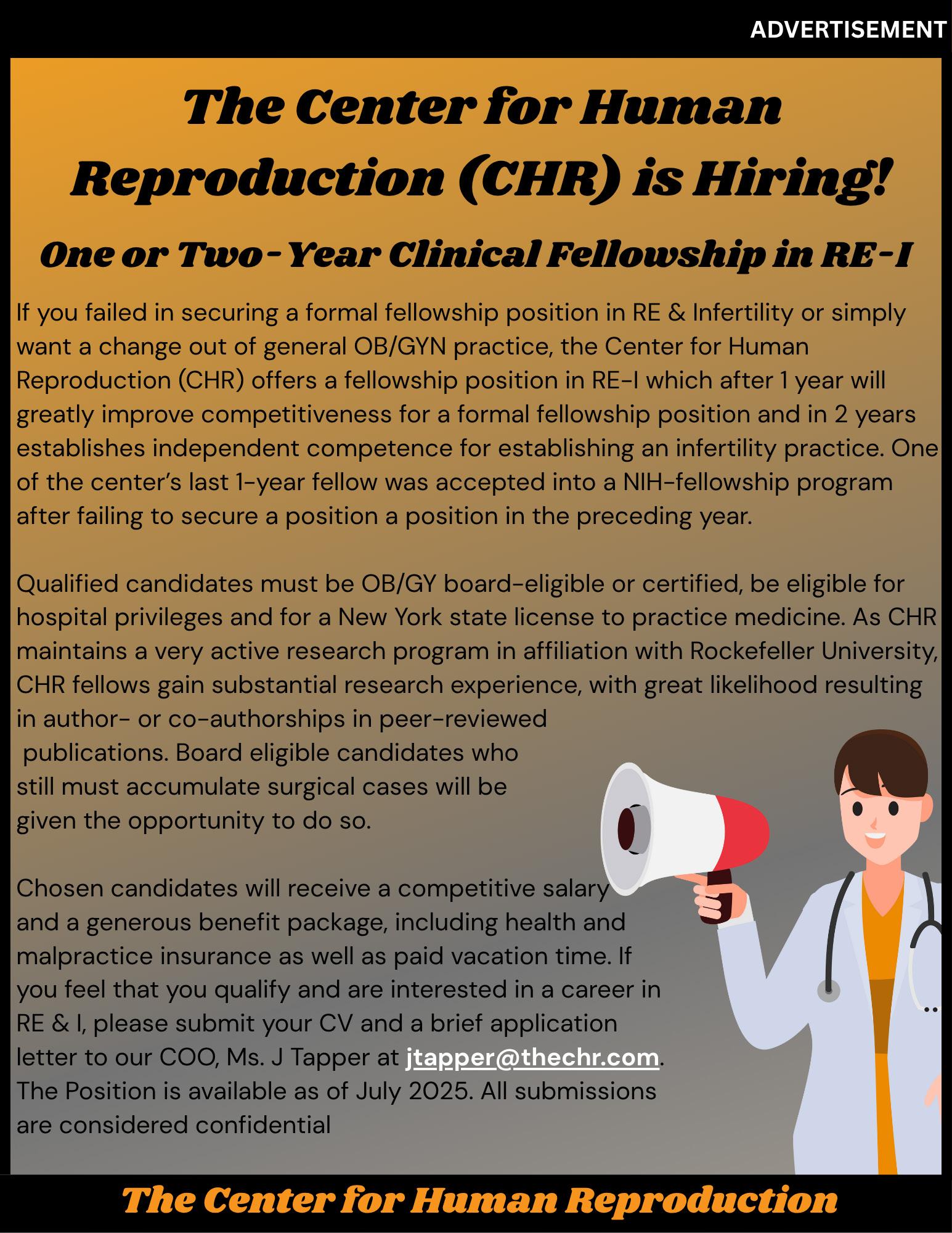 Welcome to the first-ever July-August 2025 issue of the CHR’s VOICE. It is now more than 20 years since the Center for Human Reproduction (CHR) started to publish a usually few pages long monthly newsletter, called the VOICE. It since and especially over the last decade has progressively matured into what you now see on your computer or telephone screen, or even in print format, may already hold in your hands as a full-fledged (medical) journal or magazine.