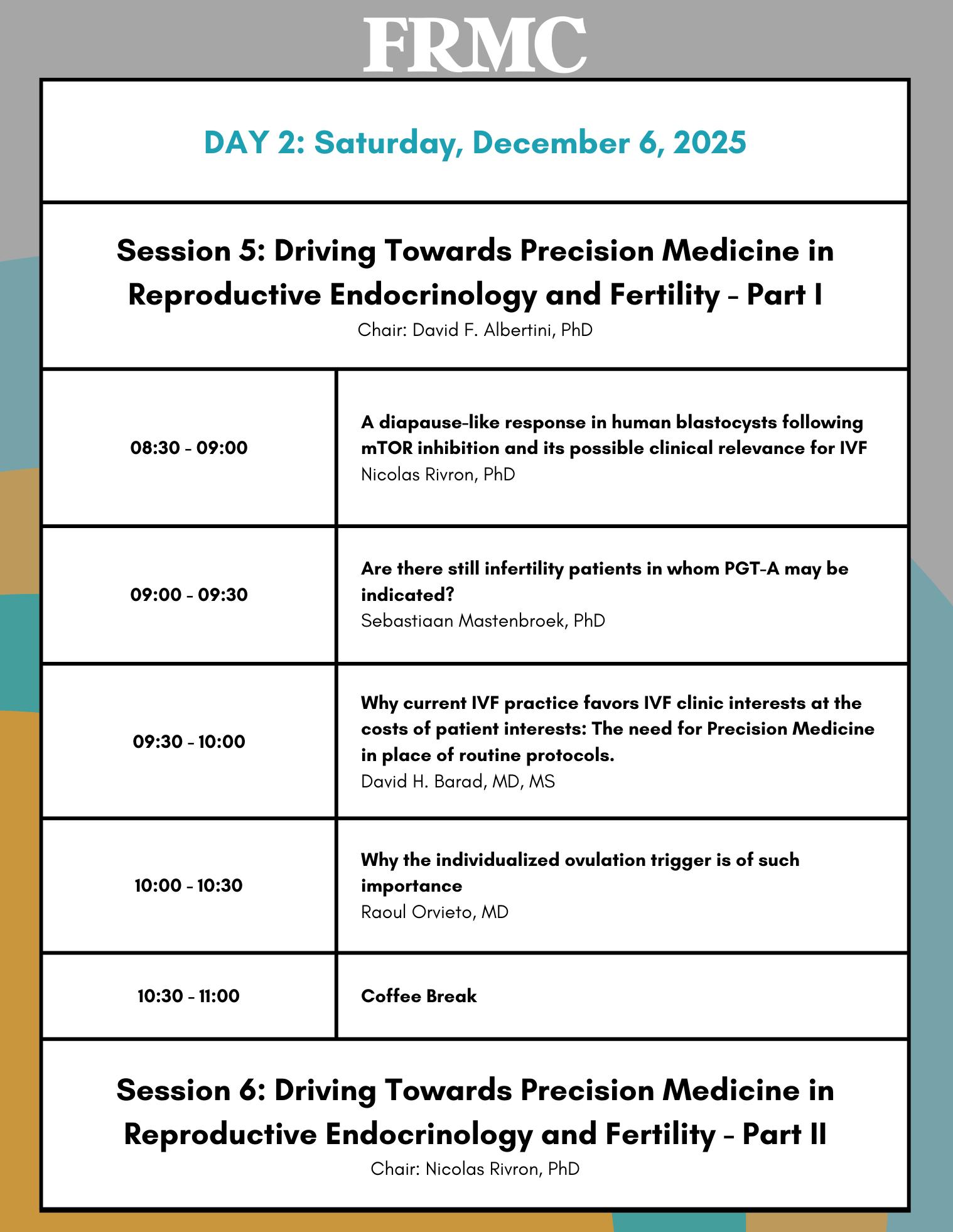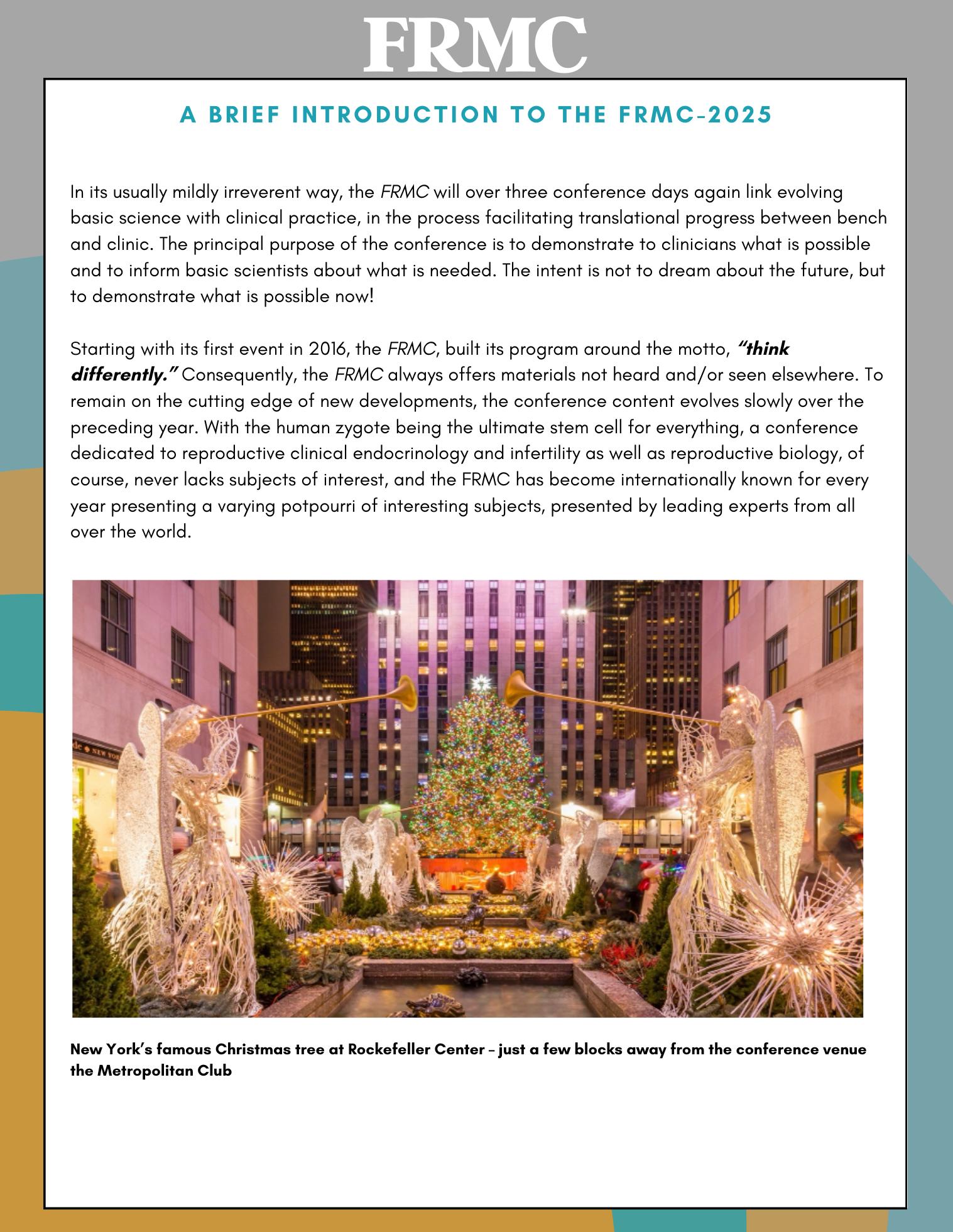Looking ahead, we’re excited to share that the Fertility & Reproductive Medicine Conference (FRMC) will return December 6-8. The FRMC is a cornerstone of CHR’s mission to foster rigorous, international, cross-disciplinary dialogue between REIs, laboratory directors, and students alike. You can find the full agenda and speaker lineup starting on page 46—and hope to see many of you there.