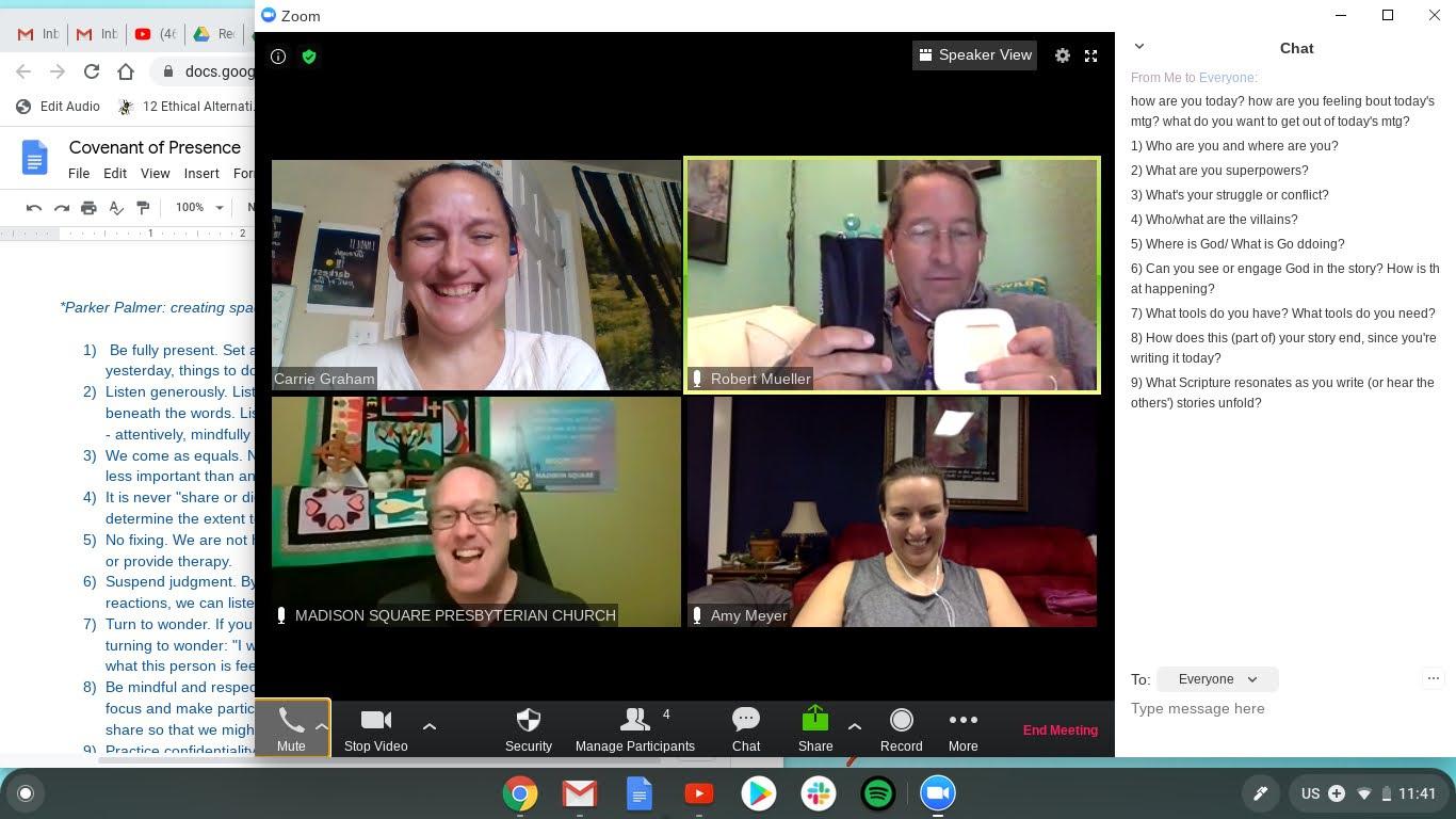 Every effort we make, in the dialogue room all the way to church leadership strategy meetings, is helping people spiritually grow in this moment by acknowledging, embracing and seeking spiritual growth in our shared uncertainty We are committed to continuing to take joy in throwing strategic, creative spaghetti at the wall and learning more and more about how to follow God's lead even when we feel disoriented, and then to offer those lessons to any around us who would like our help