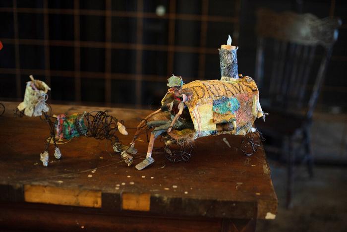 mixed media and paper mache, wire and glass, 35 x 60cm