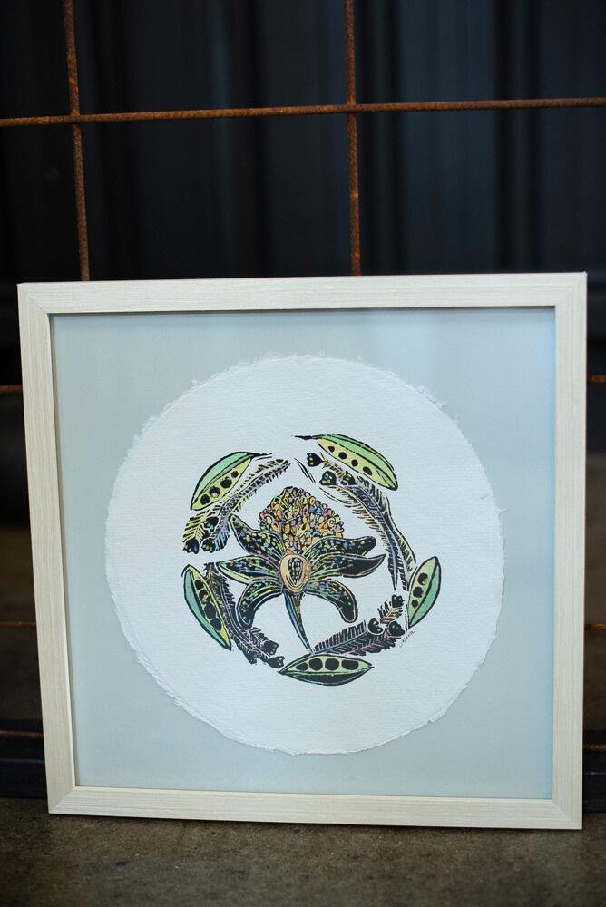 Michelle is a multid Australian landsca lifelong passion fo with seed pods, le observations of he These lino printed by her community, within small mome