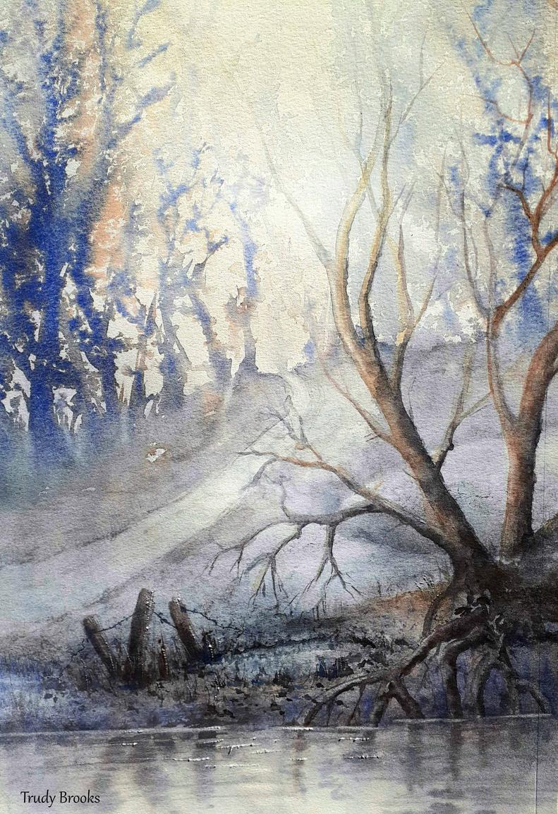 Trudy’s art evokes emotions that resonate deeply within us. Nature's serene beauty and tranquillity inspire her to capture its essence using delicate watercolours to summon a sense of calm and serenity. However, her purpose extends beyond aesthetics. She also seeks to ignite an awareness of the impending perils of climate change. With contrasting lines, tones, colours and textures, she portrays the chaos, anger, and desperation of this coming crisis. Her chosen media becomes a conduit, allowing her to shift seamlessly between the soothing whispers of nature and the urgent cries for action, urging us to protect the fragile balance of our world.