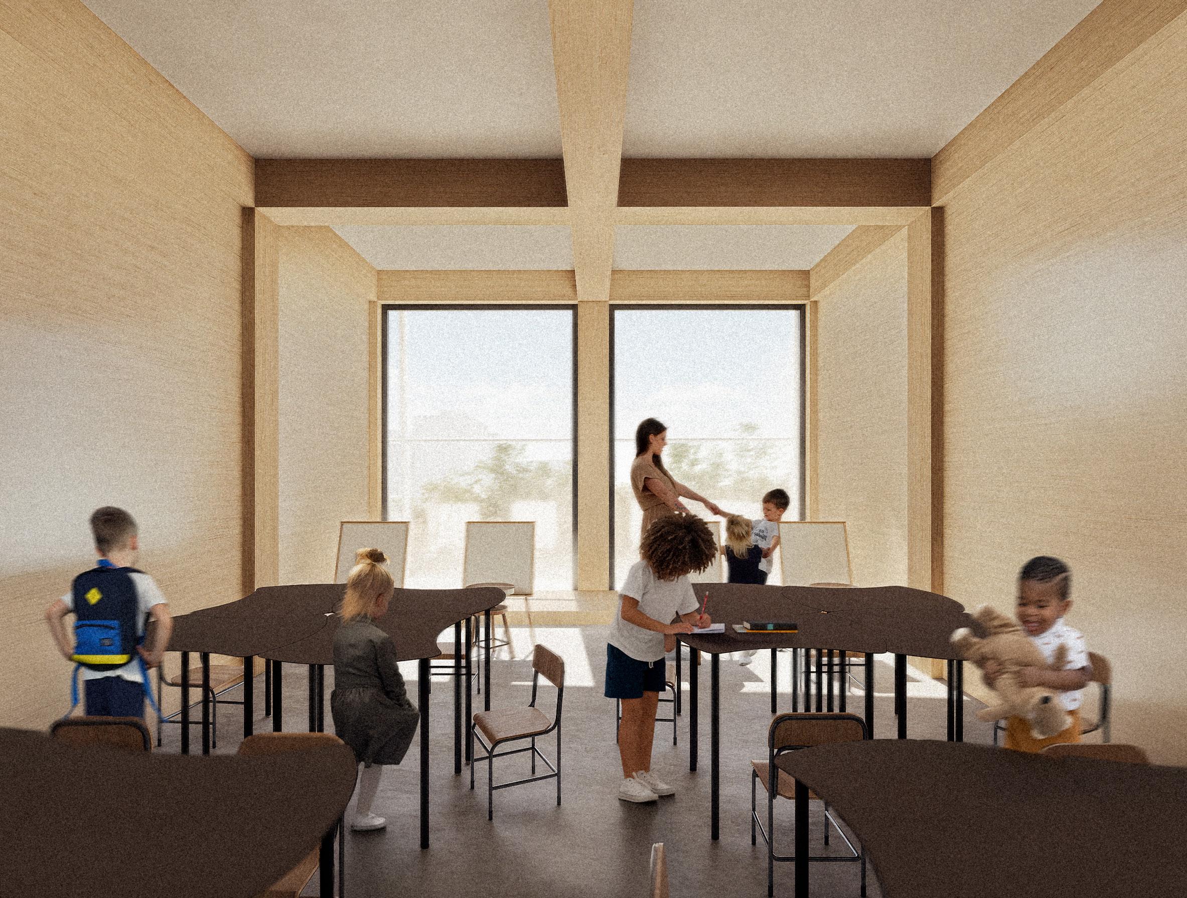 Certain areas within the building are intentionally designed as adaptable zones that can be activated by third-party investors, such as organizations focused on public health. These partners can introduce prevention clinics that complement the project’s aims, bringing specialized services directly into the everyday flow of the building. At the same time, education is embedded throughout the architectural experience in the form of an elementary school that requires restricted acces that does not deny the users into the rest of the built and public elements.