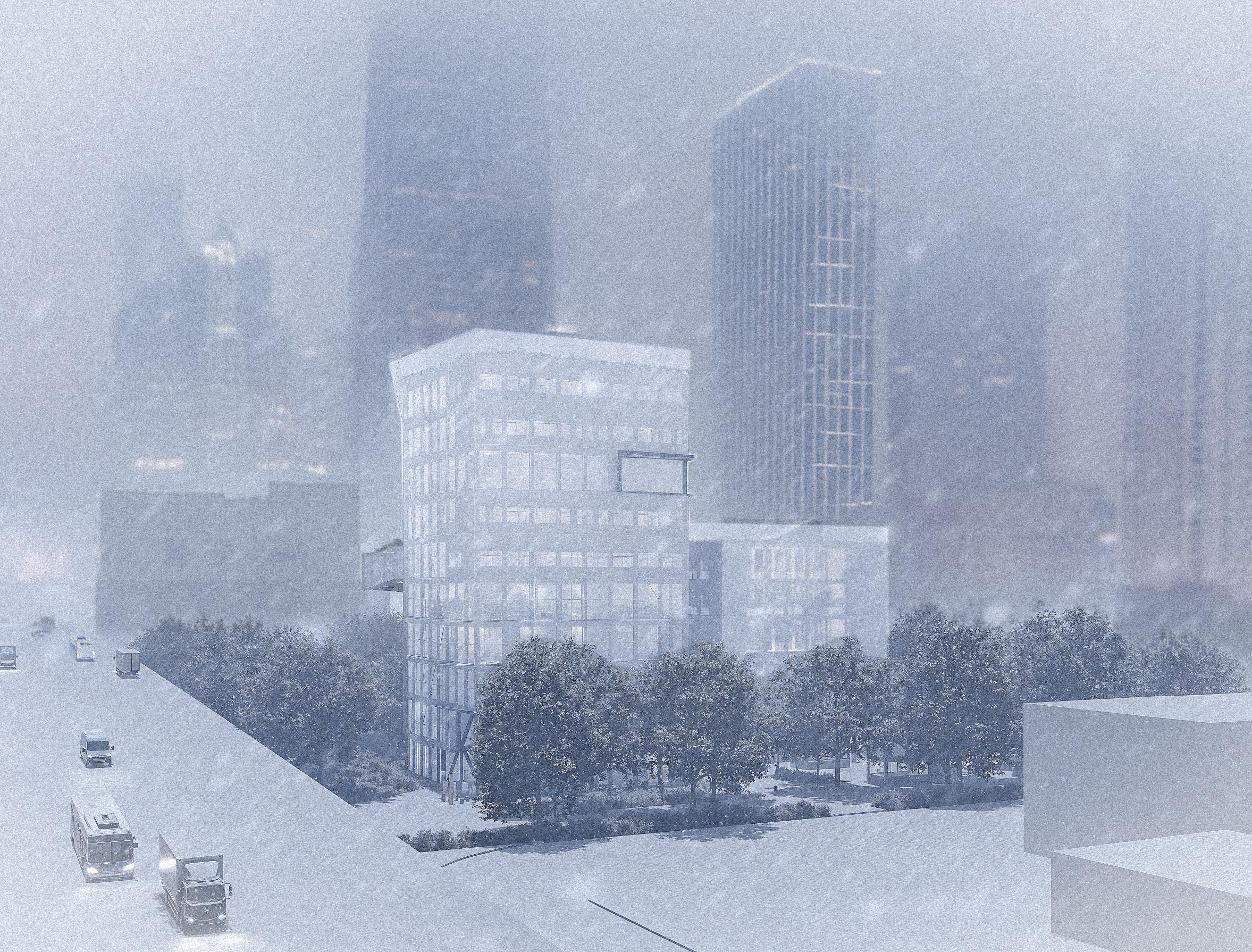 The building’s design in Chicago responds thoughtfully to the city’s harsh winter climate by incorporating a high-performance envelope system using ETFE panels. ETFE, a lightweight and highly insulating material, allows abundant natural light to enter while minimizing heat loss, creating bright and comfortable interior spaces even during the coldest months.