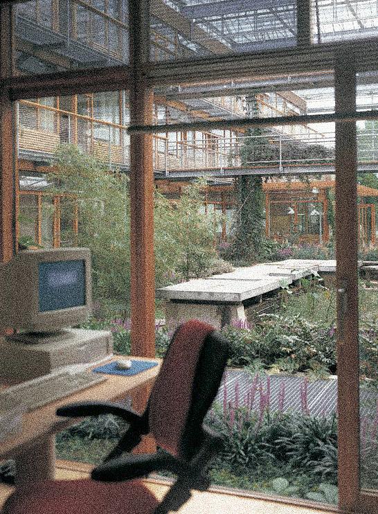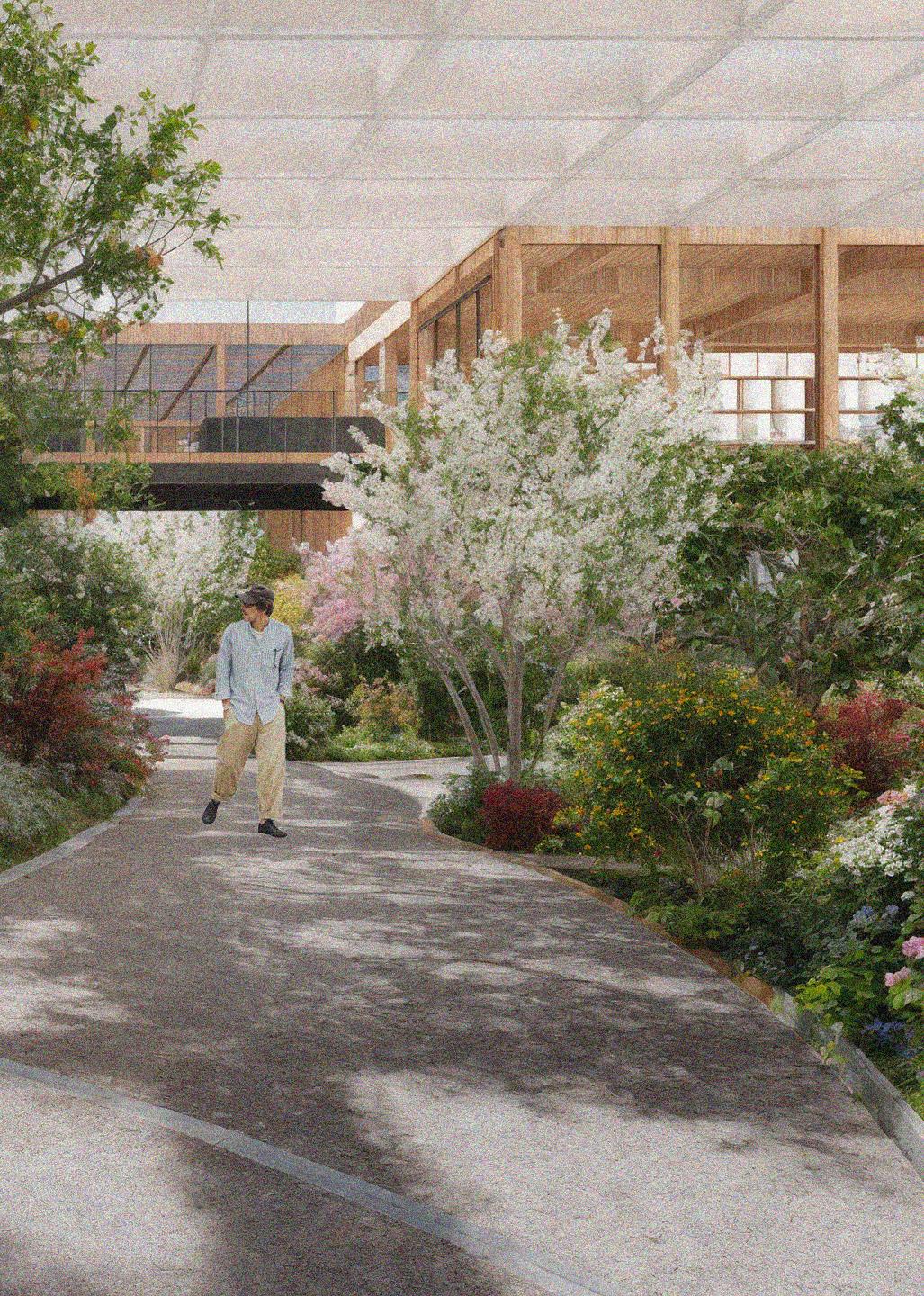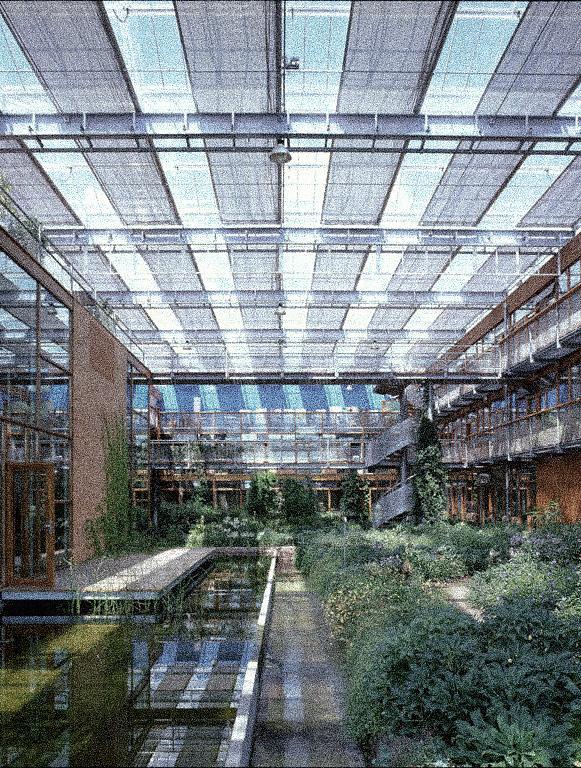 Alterra Atria Gardens transforms a scientific workplace into a climate-controlled interior landscape, where research laboratories, offices, and circulation paths surround a lush botanical atrium. The extensive glazed roof and adjustable shading systems create a dynamic environment that blurs the boundary between built form and vegetation, offering continuous visual and physical engagement with indoor nature. Water channels, planting beds, and suspended walkways choreograph movement through the space, promoting well-being, environmental awareness, and biophilic connection among users.