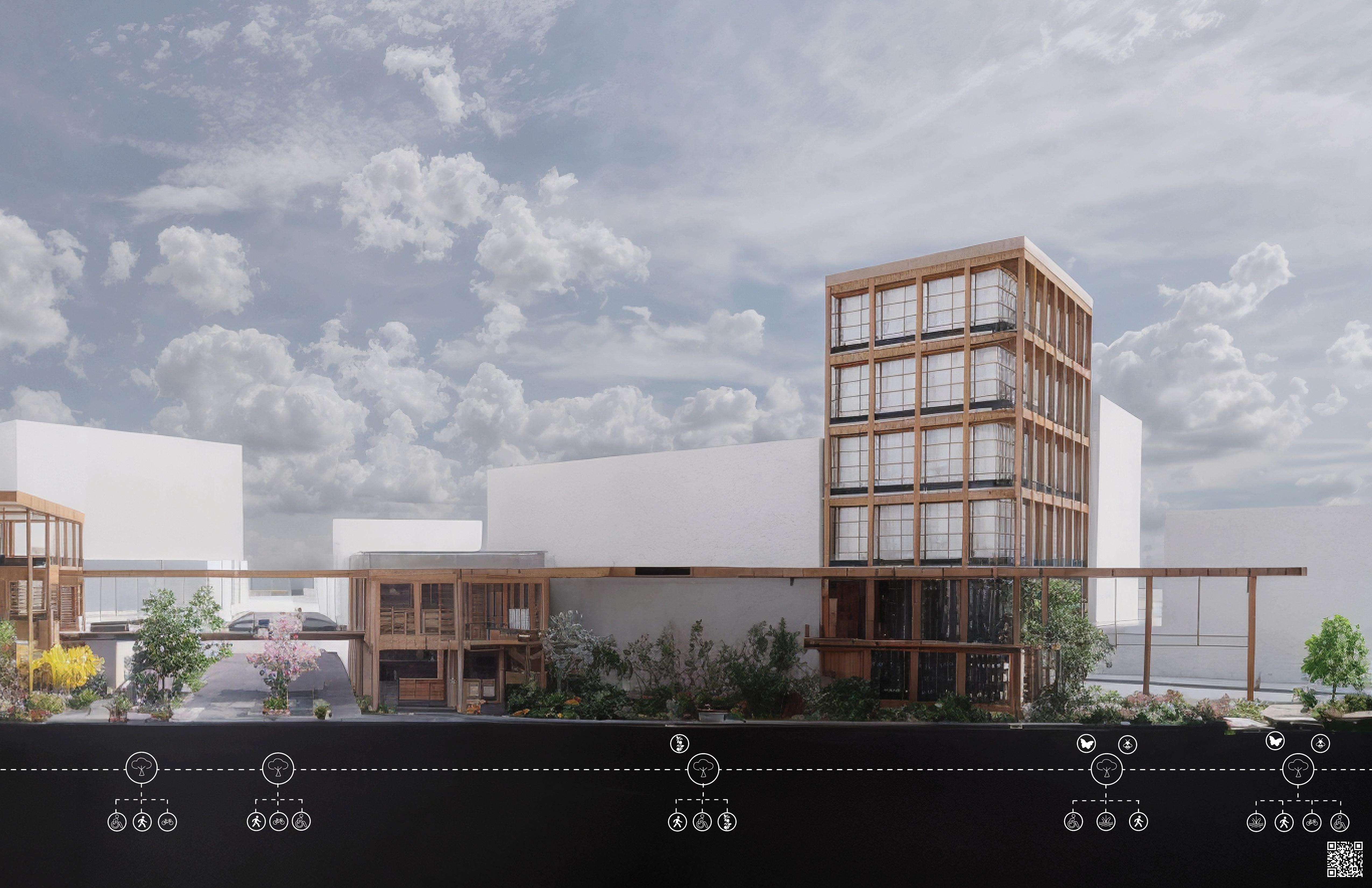 Sustainable, Biomimetic Construction: Redevelopment enables timber modular buildings that reduce embodied carbon and showcase ecological construction alternatives.