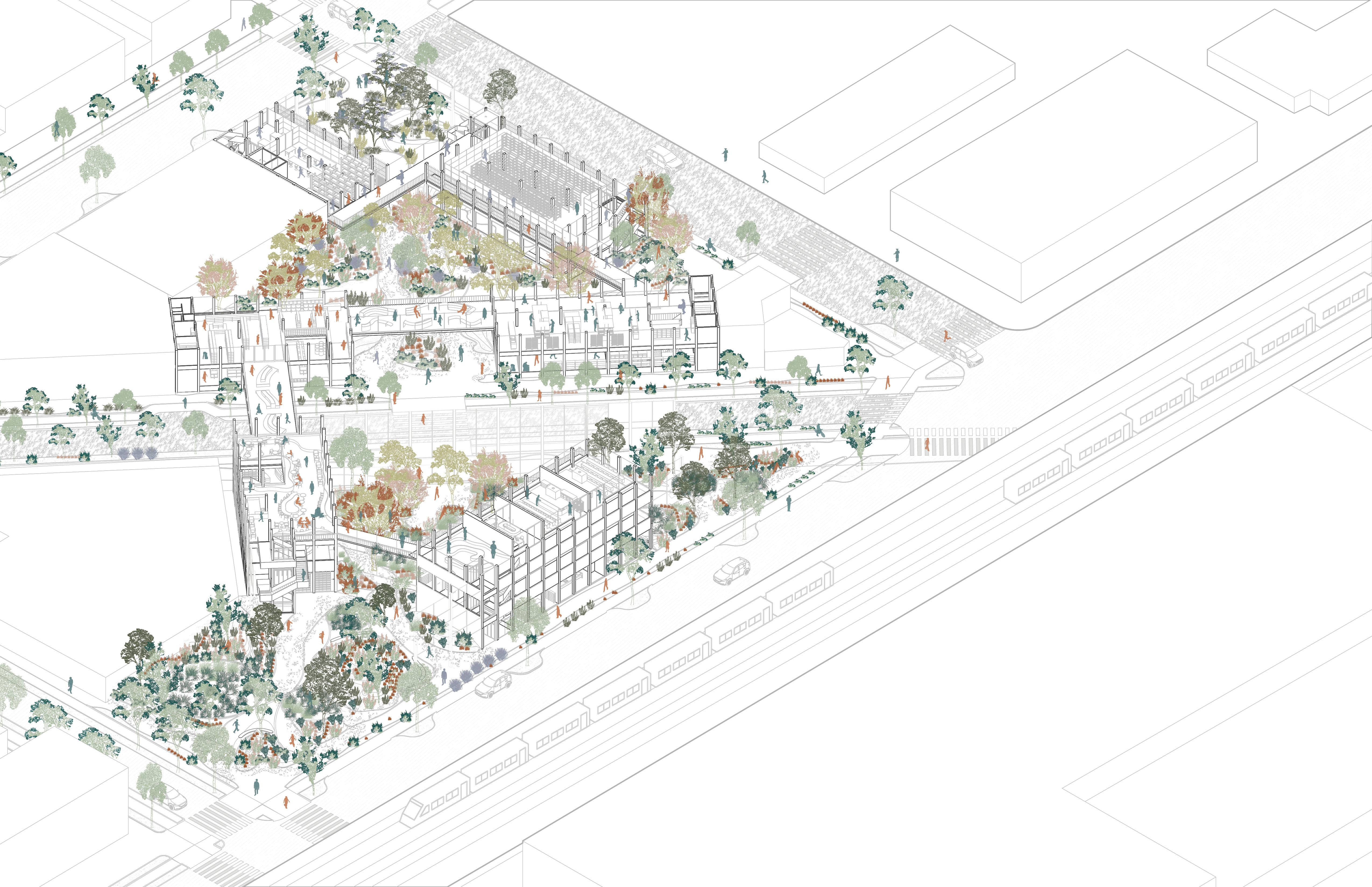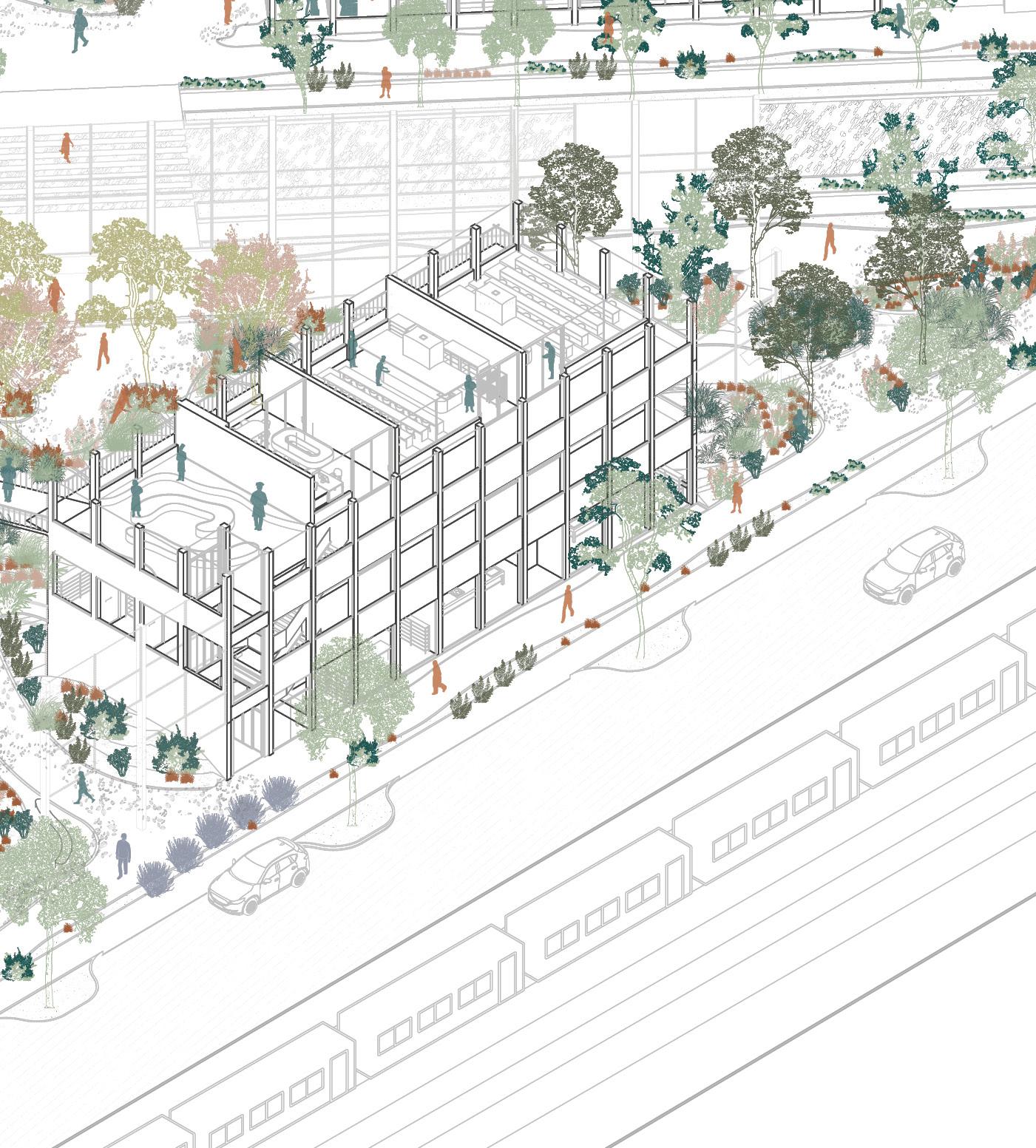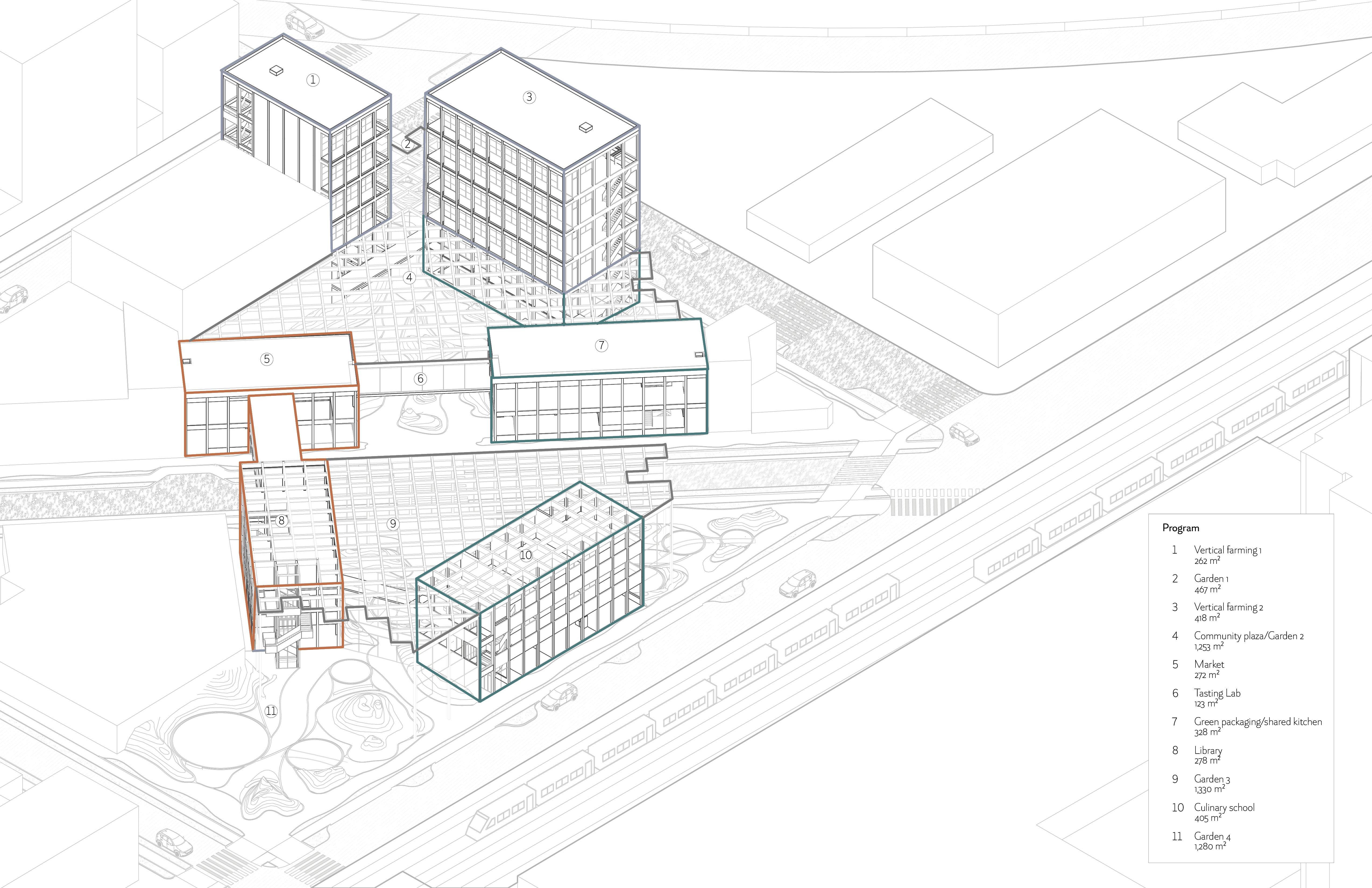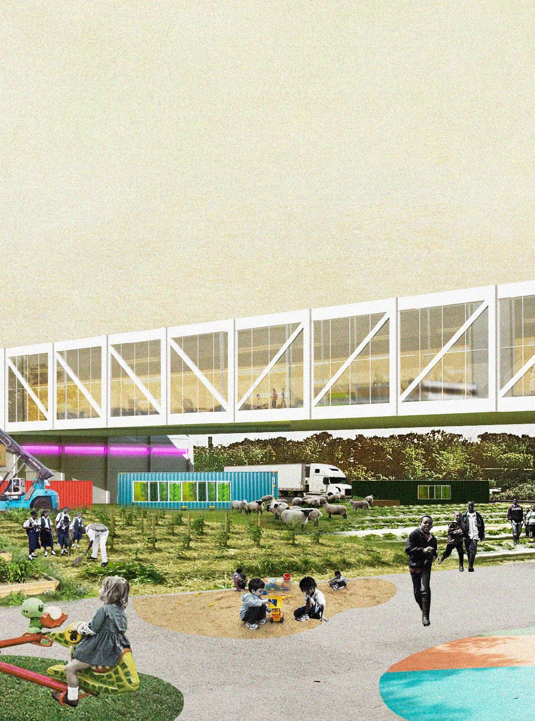 FoodPort proposes an integrated food hub where production, distribution, retail, and education coexist within a single architectural ecosystem. Conceived as a civic anchor, the project dissolves the boundaries between farmers, consumers, and entrepreneurs by hosting markets, kitchens, incubators, and logistics platforms under a unified spatial framework. Its large, open halls and elevated walkways create continuous visibility between processes, reinforcing the idea that food infrastructure can be transparent, accessible, and community-driven. Beyond its logistical ambition, FoodPort emphasizes economic inclusion and local empowerment, enabling small producers to scale their work while remaining rooted in the neighborhood.