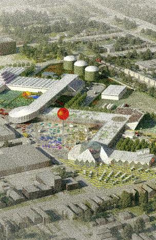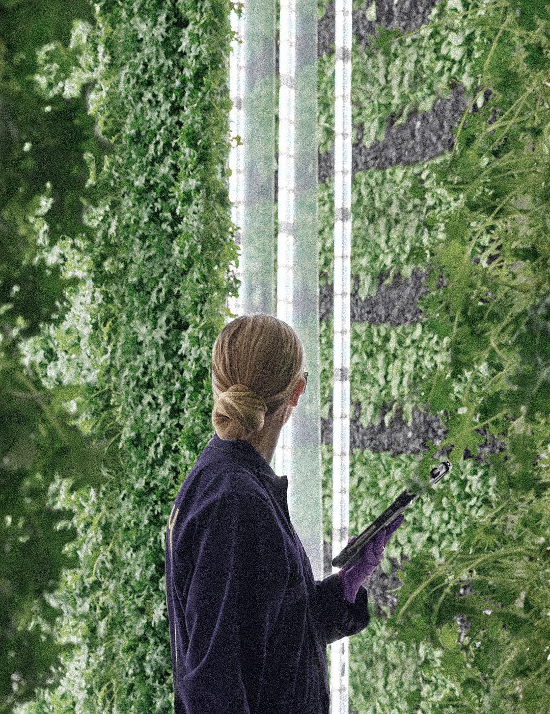 Elevated public towers are introduced to allow visitors to experience the food-production process and to traverse the entire project from above