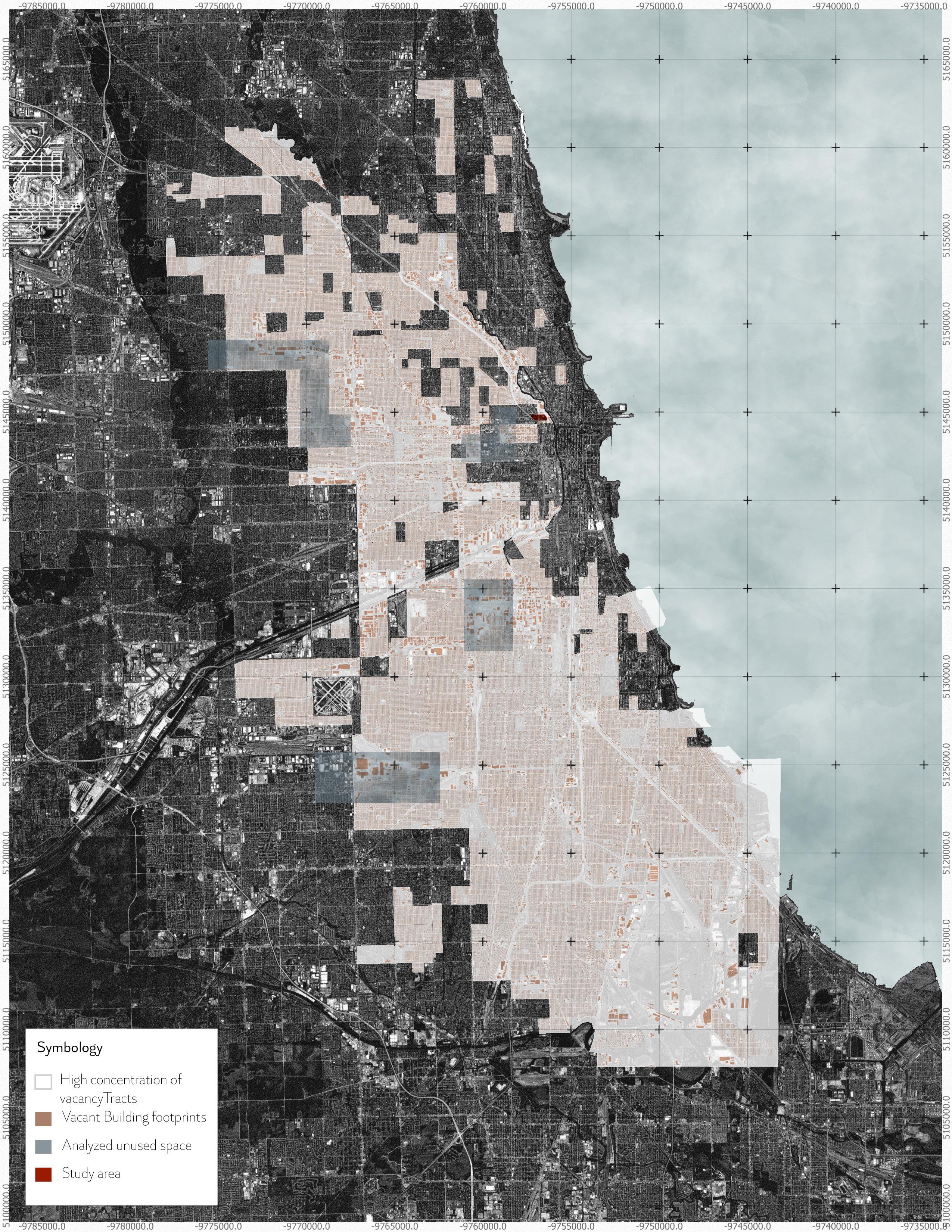 Areas with extensive vacant and leasable land expose a persistent urban reality across Chicago — one defined by discontinuous growth, abandonment, and latent potential. The accumulation of large, underused plots reveals how economic disinvestment and shifting industrial logics have fractured the urban fabric, leaving visible voids embedded within active districts. Rather than isolated absences, these back-end conditions form a continuous geography of unoccupied ground that coexists with everyday life, often hidden behind more consolidated fronts. Recognizing this landscape is not about projecting future possibilities, but about understanding the current spatial imbalance that defines much of Chicago’s built environment.