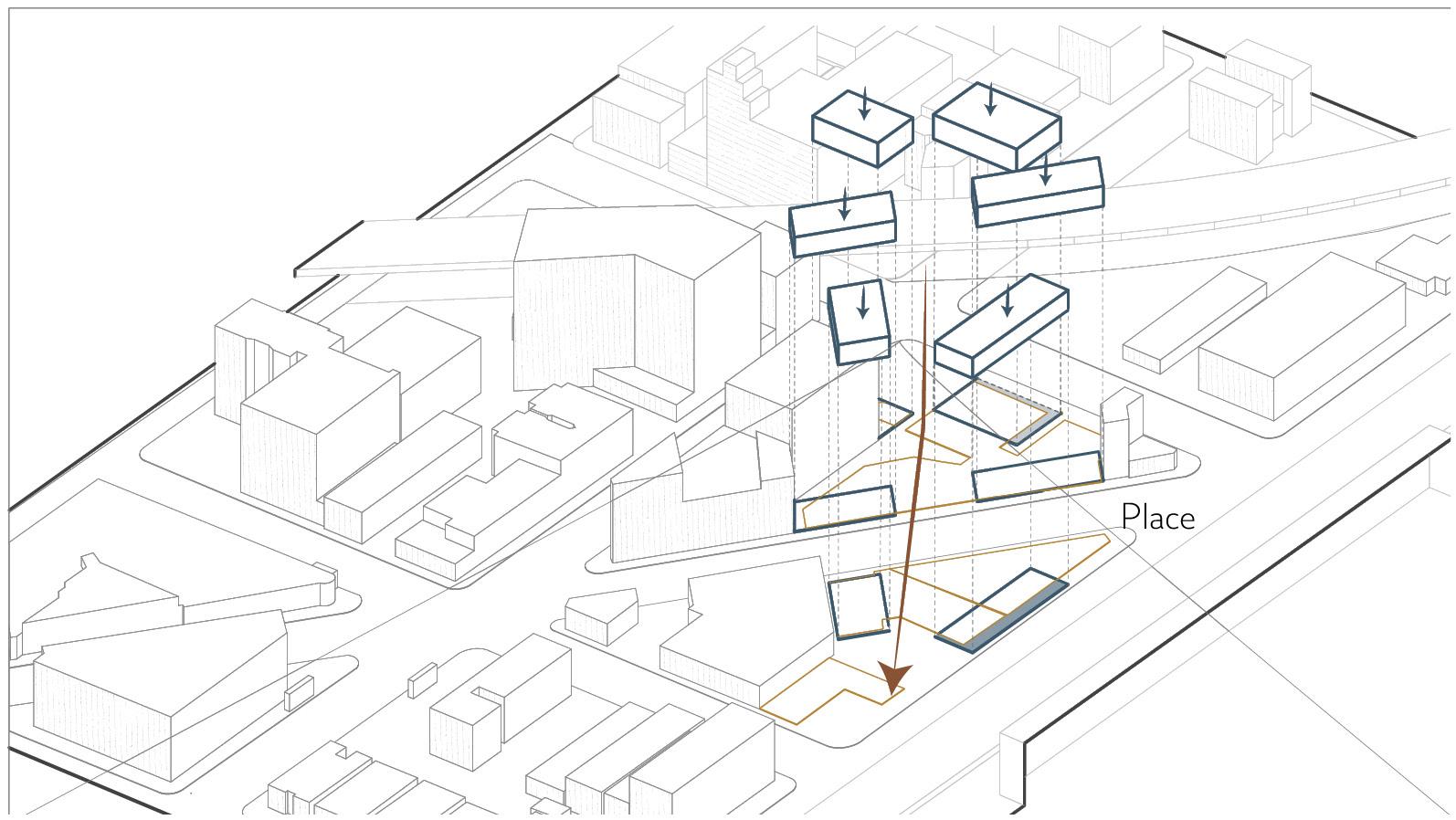 Site conditions, users, and surrounding urban fabric establish the groundwork for applying the model to place