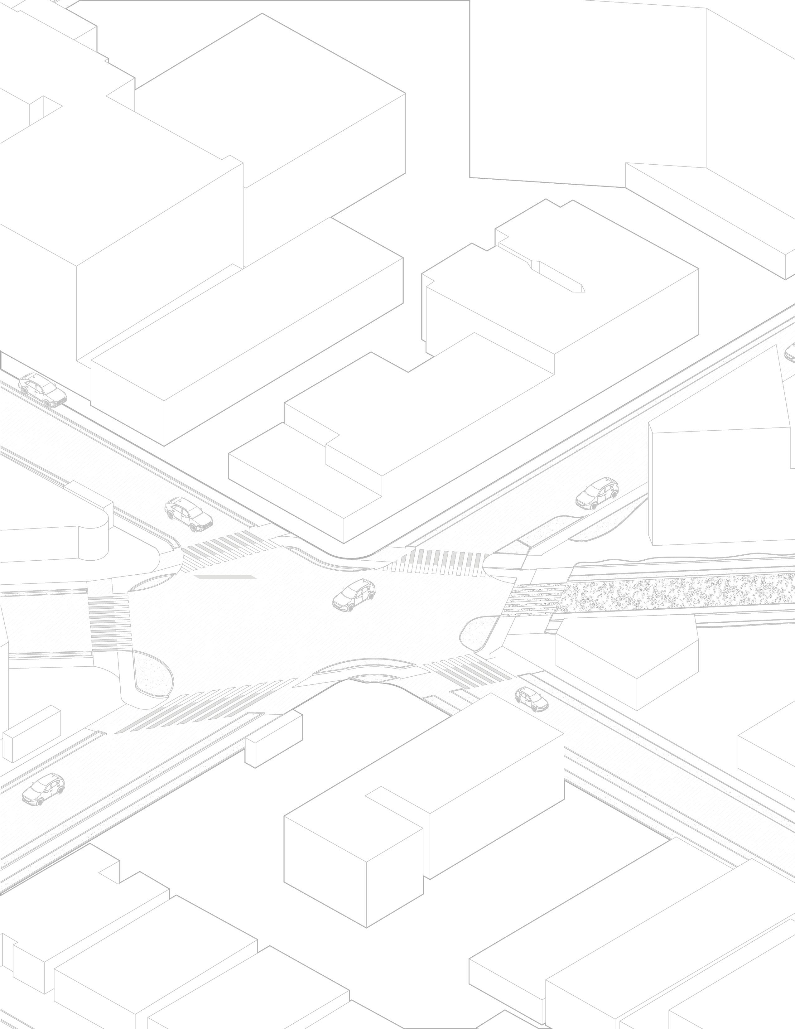 Reconnect the street as a pedestrian corridor aligned with the site’s primary circulation axes to invite the community to the project.